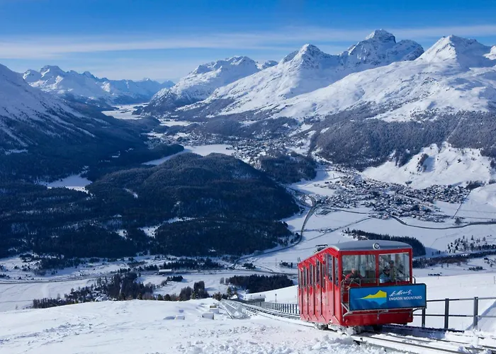 Vrchol Muottas Muragl se nachází 2 km od hotelu. 10-minutová procházka ke stanici lanovky Skilift Survih.